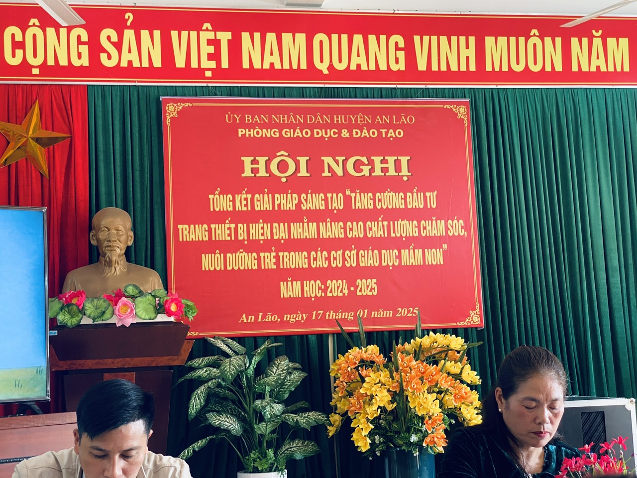Chiều ngày 17 tháng 01 năm 2025 . Phòng GD&ĐT tổ chức tổng kết giải pháp sáng tạo tại trường mầm non An Thái. về dự Hội nghị có đồng chí Nguyễn Thị Thu Hương- Phó trưởng phòng, đồng chí Nguyễn Thị Dung- chuyên viên PGD, các đồng chí lãnh đạo xã An Thái, BGH, giáo viên, nhân viên các trường mầm non trong huyện về dự. Giải pháp đã mang lại những kết quả đáng phấn khởi vì sự đầu tư, mua sắm các trang thiết bị hiện đại cho bếp ăn giúp cho công tác vệ sinh an toàn thực phẩm luôn được đảm bảo và giám tải công việc nặng nhọc cho nhân viên nấu ăn. Giải pháp có tính lan tỏa trong toàn huyện. Sau đây là một số hình ảnh của Hội nghị: