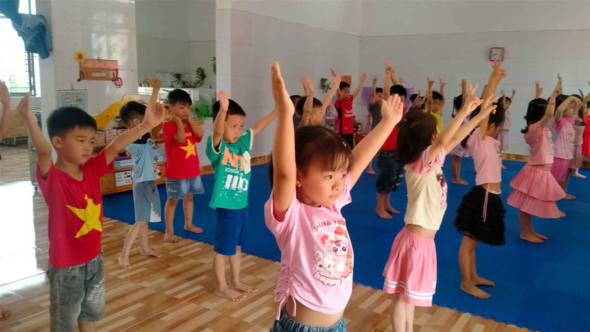 Thực hiện lời dạy của Bác "Mỗi một người dân yếu ớt, tức là cả nước yếu ớt, mỗi một người dân mạnh khỏe tức là cả nước mạnh khỏe”. “Luyện tập thể dục, bồi bổ sức khỏe là bổn phận của mỗi một người yêu nước. Mỗi người dân mạnh khỏe tức là cả nước mạnh khỏe”. Các bé lớp 5A3 tích cực rèn luyện sức khỏe theo gương của Bác
