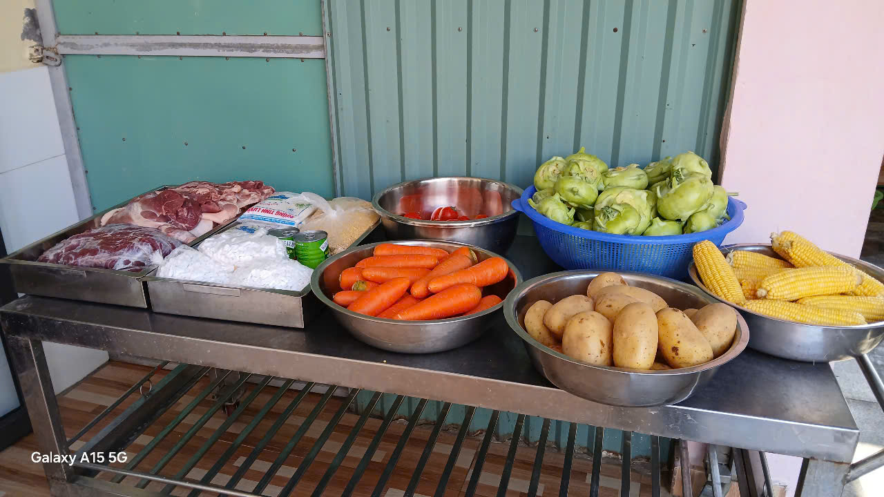 Hôm nay, bếp ăn của trường tiếp tục chuẩn bị những món ăn ngon, sạch sẽ và đầy đủ dinh dưỡng cho các bé. Với thực đơn cân đối và nguyên liệu tươi ngon, nhà trường luôn mong muốn mang đến cho các con những bữa ăn an toàn, hợp vệ sinh và thật ngon miệng!