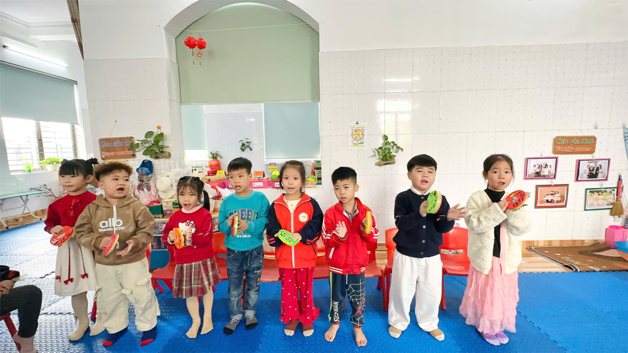 Trẻ được làm quen với nhịp điệu, tiết tấu, học cách vỗ tay, vỗ đệm theo phách, theo nhịp các bài hát về mẹ và cô như: "Quà mùng 8 tháng 3"...,sử dụng dụng cụ âm nhạc (xúc xắc, phách tre...) giúp đôi tay trẻ trở nên khéo léo, nhanh nhẹn, phát triển khả năng phối hợp giữa tai nghe và tay vỗ.