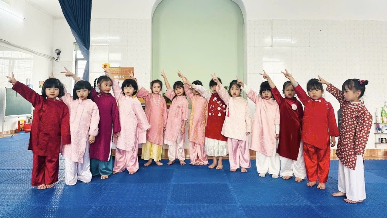Hoạt động văn nghệ không chỉ mang lại không khí vui tươi, sôi nổi mà còn giúp các bé mạnh dạn, tự tin và biết thể hiện lòng biết ơn đối với những người phụ nữ thân yêu.