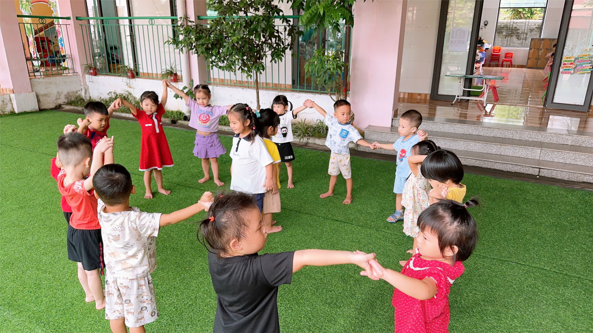 Với những vòng tròn tay nối tay đầy hứng khởi, tiếng cười giòn tan của các bé vang khắp sân trường. “Chú mèo” tinh nghịch cố gắng đuổi theo “chú chuột” lanh lợi, trong khi các “bạn nhỏ” xung quanh vừa reo hò cổ vũ vừa khéo léo giúp chuột chạy trốn. Không chỉ là trò chơi, đây còn là một bài học sống động về sự hợp tác, chia sẻ và gắn bó giữa các thành viên trong lớp.