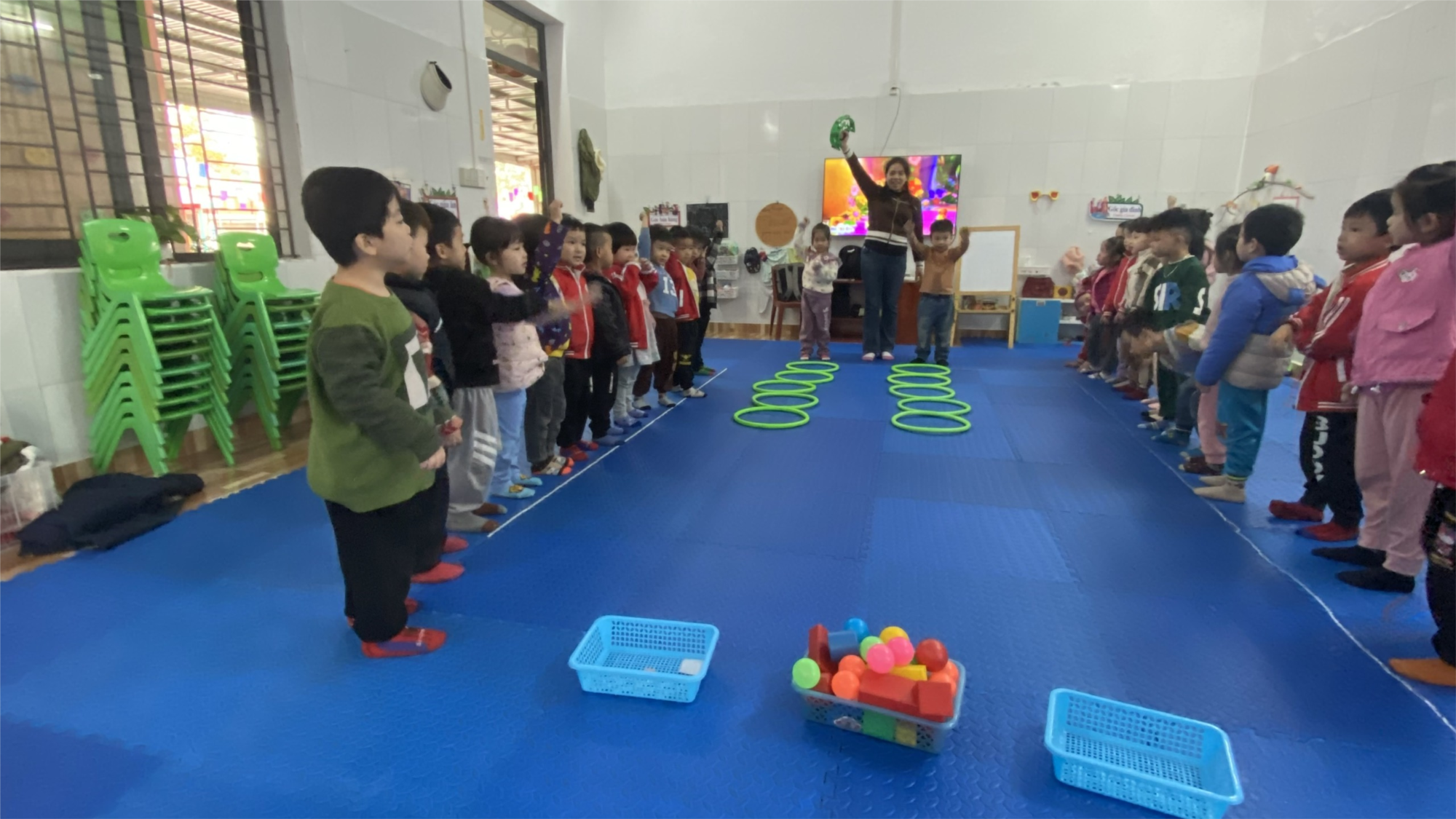 Mầm non luôn luôn hiếu động và tràn trề năng lượng, các bài vận động sẽ giúp trẻ đốt cháy năng lượng và giúp cơ thể hấp thụ chất dinh dưỡng rất tốt. Bên cạnh đó, giúp trẻ ngủ ngon và sâu hơn, giữ được lượng đường huyết và cholesterol ổn định để luôn khỏe mạnh và khám phá cuộc sống quanh mình. Các bài vận động thường được giáo viên xây dựng phù hợp với từng độ tuổi của trẻ và được phân nhóm vận động như: vân động tinh, vận động thô, nhóm trườn, trèo, bật, ném… nhằm thu hút trẻ. Các bài tập vận động vừa sức giúp cơ thể trẻ thoải mái, kích thích hoạt động của các hệ cơ quan bên trong như hệ tuần hoàn, hệ thần kinh, hệ hô hấp, hệ tiêu hóa... Đặc biệt, khi trẻ luyện tập với các yếu tố tự nhiên như ánh nắng mặt trời, nước, không khí... giúp trẻ thích nghi tốt hơn với môi trường sống bên ngoài, tăng cường sức đề kháng của cơ thể.