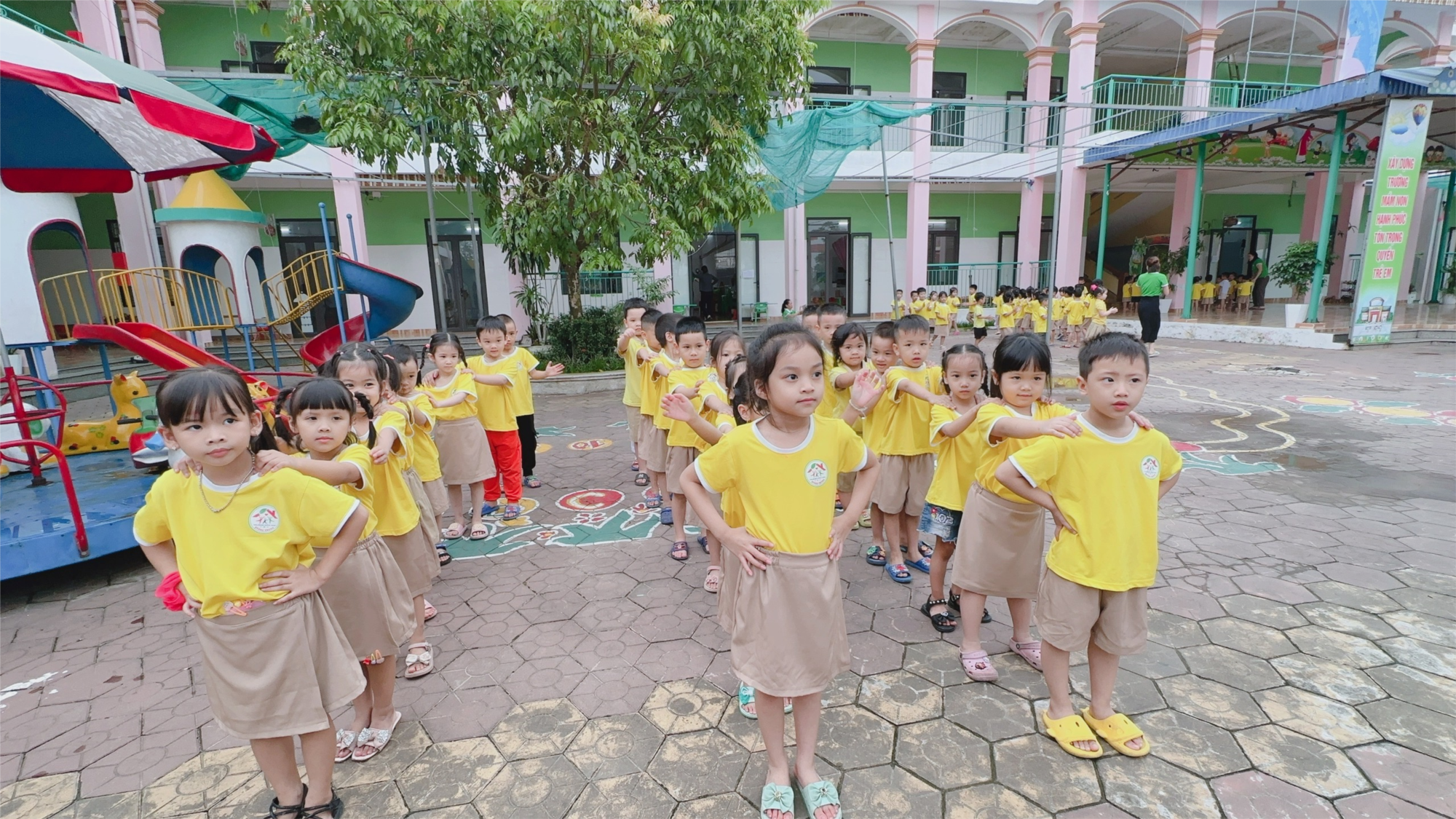 Thể dục sáng là một hoạt động không thể thiếu đối với bậc học Mầm Non. Buổi sáng trẻ đến trường được tập luyện các bài tập thể dục sáng đơn giản, nhẹ nhàng tạo cho trẻ một tâm thế thoải mái, sự sảng khoái, khéo léo, nhanh nhẹn, dẻo dai và bền bỉ giúp trẻ có một sức khỏe tốt khi bước vào một hoạt động khác.