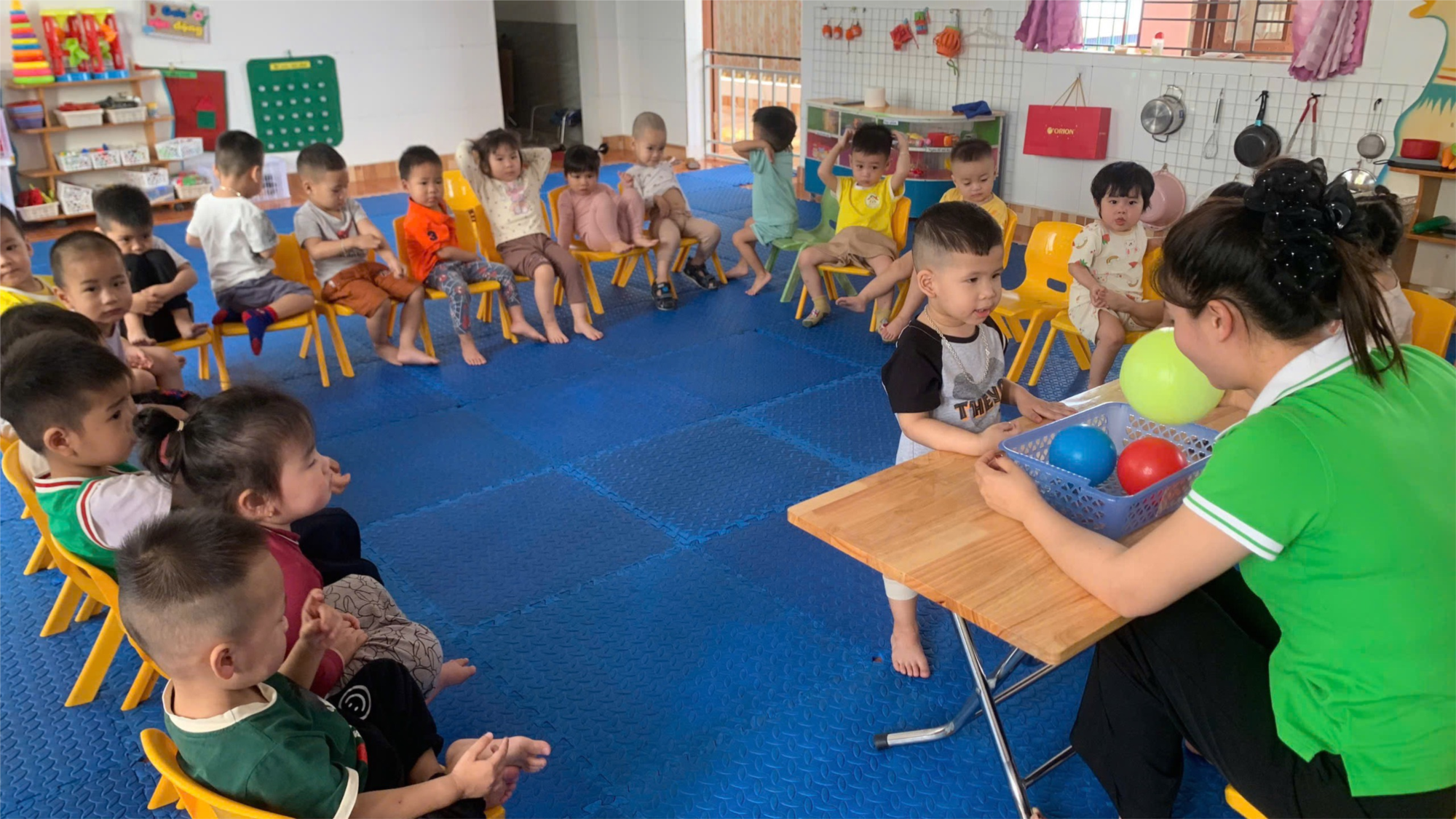 Giờ học nhận biết màu của các bé lớp nhà trẻ trường MN Quang Trung