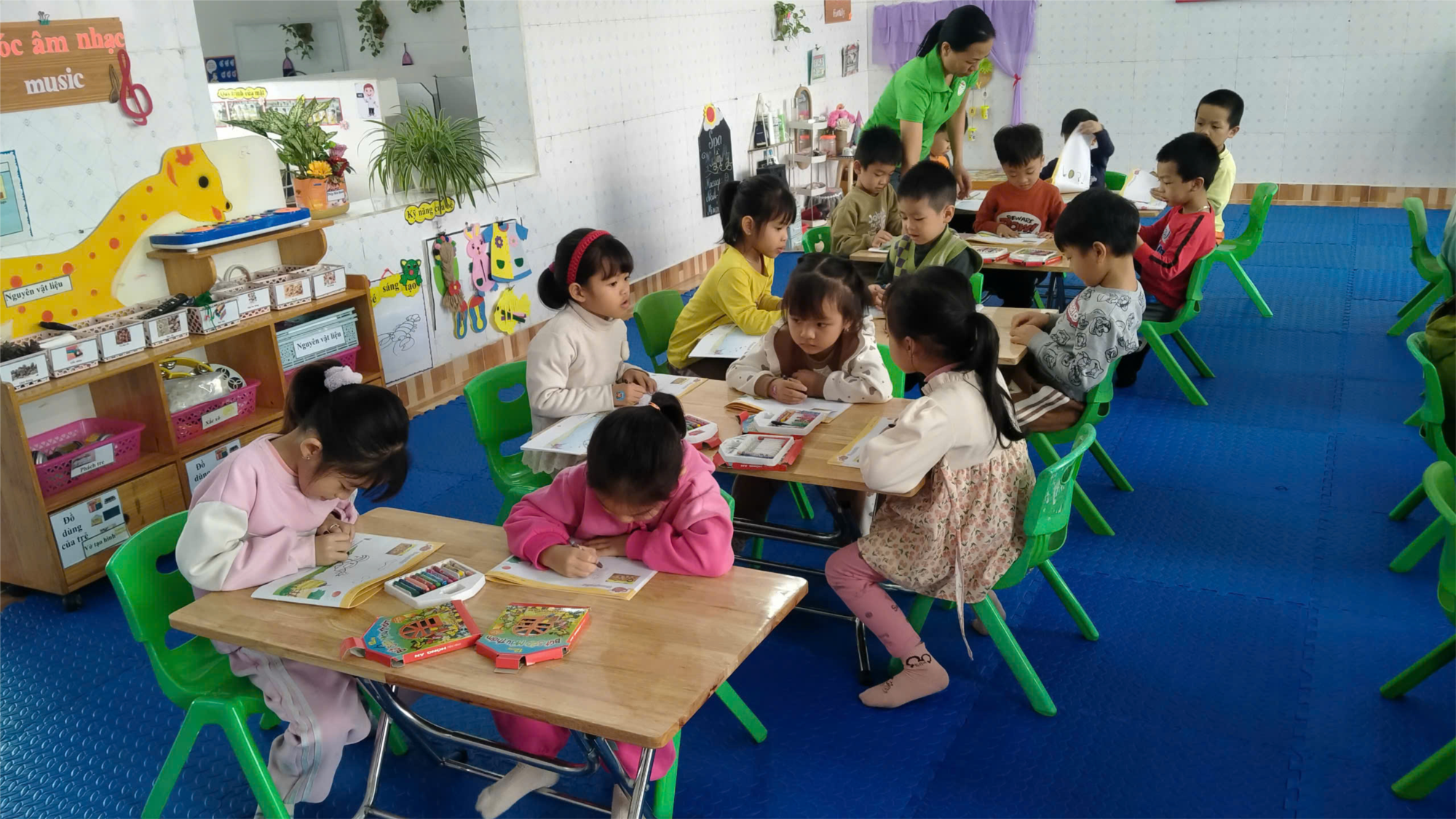 Ngoài giờ hoạt động chung buổi sáng, các con lớp 5A3 còn học giờ hoạt động chiều hàng ngày trong tuần. Giờ hoạt động chiều các con được học hát, học múa, đọc thơ, kể chuyện, học các kĩ năng phục vụ của bản thân. Các con được ôn luyện các kiến thức đã học, để nắm chắc kiến thức hơn, hiểu sâu hơn về chủ điểm bé học. Với chủ điểm “ Động vật” Nhánh “ Động vật nuôi” trẻ được nhận biết phân biệt các con vật nuôi trong gia đình, những con vật đó mang lại lợi ích cho con người. Ngoài ra trẻ còn vẽ lại những con vật mà trẻ đã được học.