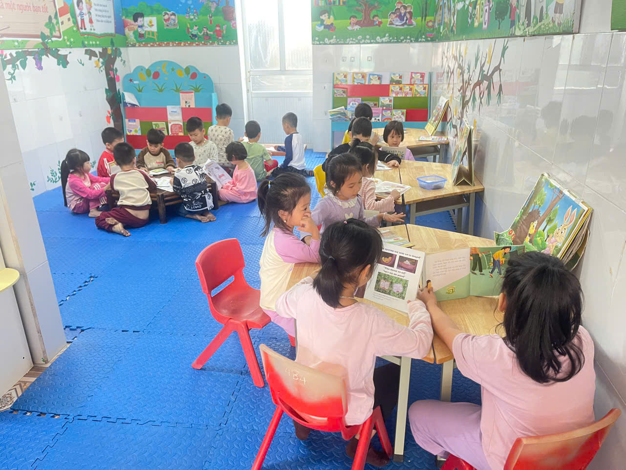 Hoạt động thư viện đóng vai trò quan trọng trong việc hình thành thói quen học tập và đọc sách từ sớm, giúp trẻ phát triển toàn diện cả về ngôn ngữ, tư duy, cảm xúc và kỹ năng xã hội. Đây là một môi trường lý tưởng để trẻ khám phá, sáng tạo và học hỏi, đồng thời là cầu nối quan trọng giữa nhà trường, giáo viên, phụ huynh và trẻ.