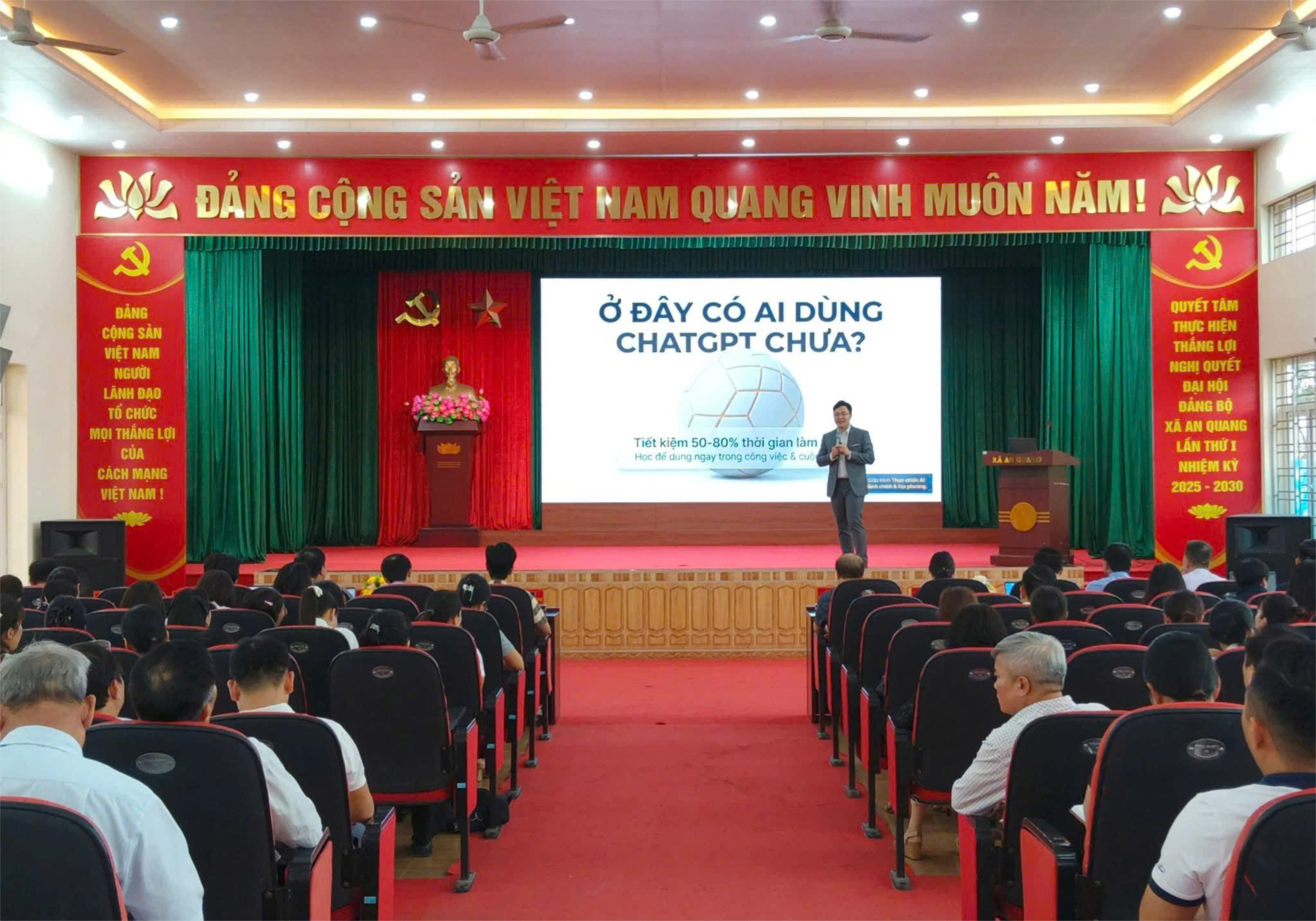 Thực hiện Kế hoạch số 18/KH-UBND ngày 22/01/2026 của UBND xã An Quang về đào tạo, bồi dưỡng kiến thức cho cán bộ, công chức, viên chức năm 2026, UBND xã đã tổ chức chương trình tập huấn ứng dụng trí tuệ nhân tạo (AI).