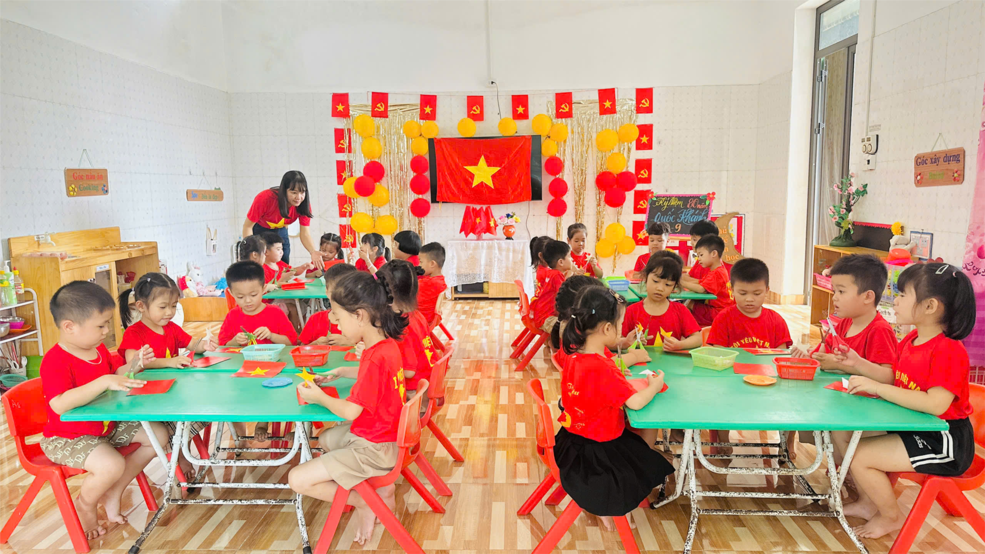Trong không khí tưng bừng chào mừng ngày Quốc khánh 2/9, các bé lớp 5A1 đã cùng nhau tham gia hoạt động" Cắt dán lá cờ Tổ quốc". Thông qua hoạt động không chỉ giúp các bé rèn luyện kỹ năng, sự tập trung và phát triển thẩm mĩ, hoạt động còn góp phần giáo dục tình yêu quê hương đất nước, giúp trẻ hiểu ý nghĩa ngày Quốc khánh và thêm tự hào khi cùng nhau đón mừng ngày lễ trọng đại của dân tộc.