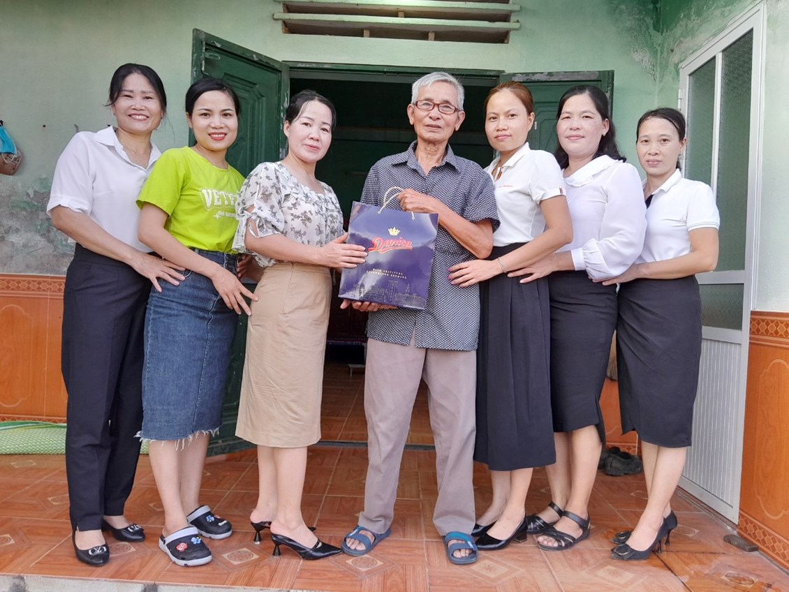 Đồng chí Lê Thị Hương- Hiệu trưởng nhà trường thay mặt các đồng chí trong đoàn ân cần thăm hỏi tình hình, sức khoẻ và đời sống của các gia đình, đồng thời bày tỏ lòng biết ơn sâu sắc đối với những đóng góp to lớn của các thương bệnh binh, gia đình chính sách, người có công trong sự nghiệp đấu tranh giải phóng dân tộc, thống nhất đất nước. Đây là hoạt động thường niên của Công đoàn nhà trường nhằm tri ân, động viên, chia sẻ những khó khăn, mất mát của những người có công với cách mạng cũng như thân nhân của các gia đình liệt sĩ.