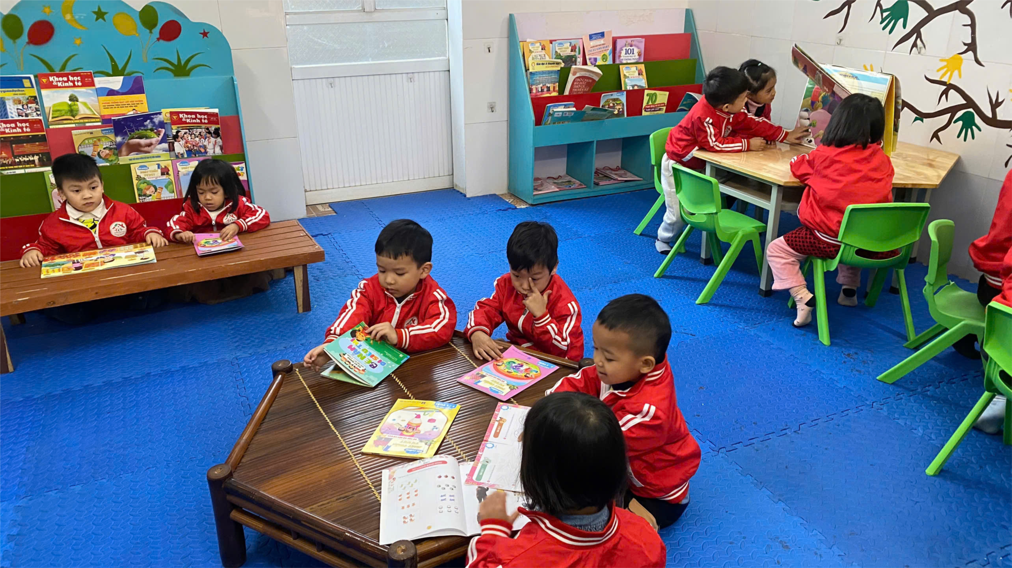 Hình ảnh các con cùng nhau đọc sách tại phòng thư viện
