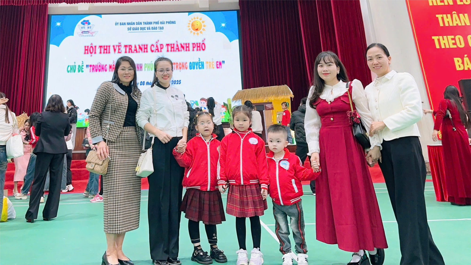 các bé trường Mầm non Quang Trung tham gia thi vẽ tranh cấp thành phố với chủ