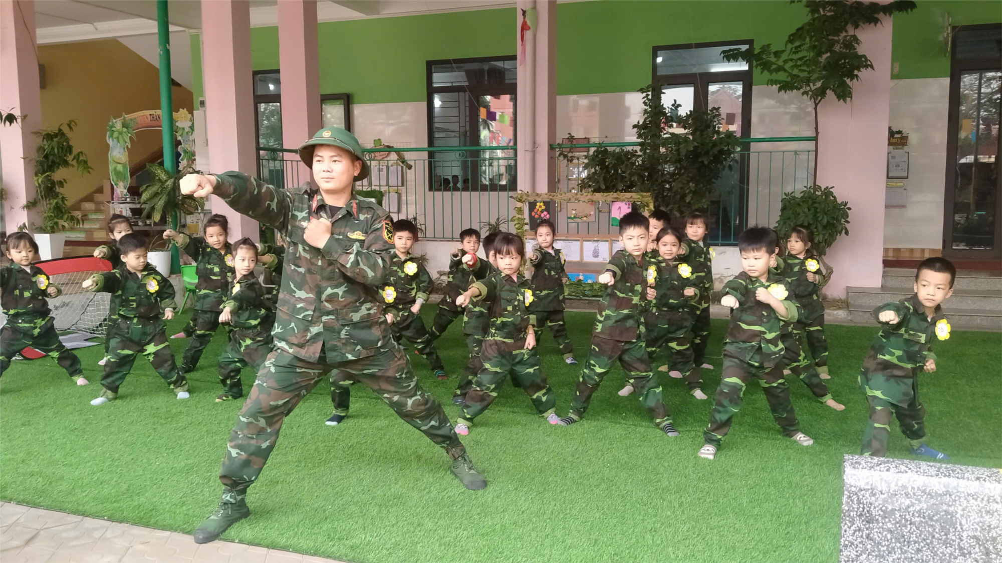 Với không khí vô cùng háo hức, tự hào khi được khoác trên mình màu áo của chú bộ đội thân thương, trẻ được thỏa sức làm chiến sĩ. đã tạo ra không khí vui vẻ, tự nhiên, phát huy được năng lực, sở trường, tư duy sáng tạo, năng khiếu, giao lưu học hỏi…của cô và trẻ.
