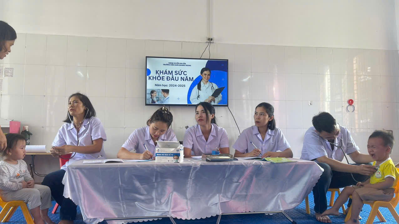 Đối với giáo dục mầm non công tác chăm sóc sức khỏe trẻ là mục tiêu, nhiệm vụ quan trọng không thể thiếu và tách rời với chương trình giáo dục mầm non. Chính vì vậy công tác chăm sóc sức khỏe luôn được nhà trường quan tâm. Trẻ khỏe mạnh là trẻ phát triển toàn diện cả về thể chất lẫn tinh thần. Theo kế hoạch của nhà trường việc tổ chức khám sức khoẻ định kỳ cho trẻ sẽ được thực hiện 2 lần /năm vào đầu năm và cuối năm học. Kết quả kiểm tra sức khoẻ của trẻ đã được cán bộ y tế và giáo viên phụ trách lớp ghi chép cụ thể trong sổ theo dõi sức khỏe, chấm biểu đồ phân loại sức khỏe trẻ và được giáo viên các lớp thông báo đến phụ huynh, đặc biệt là một số trẻ mắc bệnh qua đó phụ huynh cùng phối hợp có biện pháp điều trị kịp thời cho trẻ.