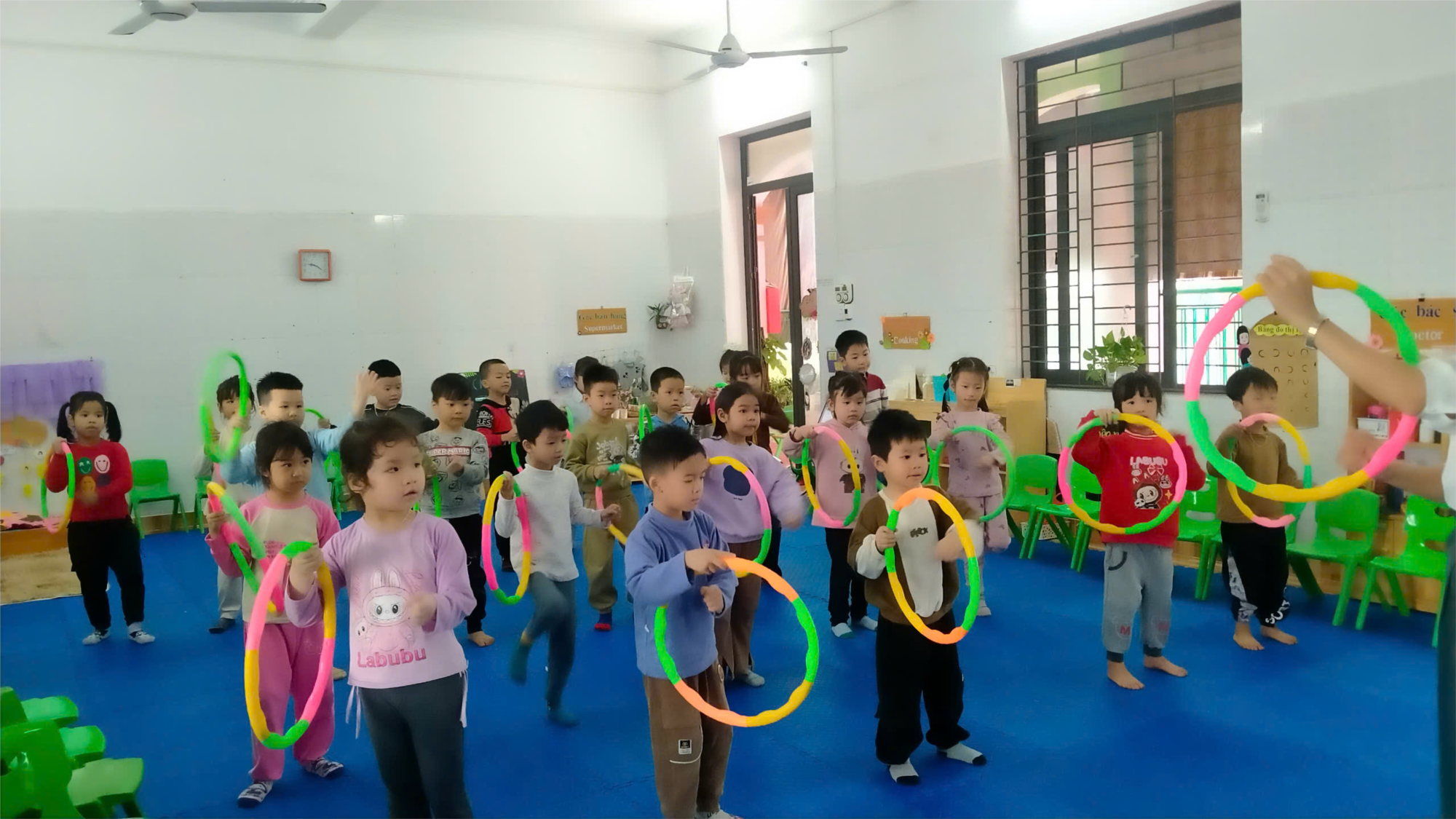 Chính vì theo nét văn hóa cổ truyền dân tộc các bạn lớp 5A3 tập múa sạp kết hợp với vòng bài " Xòe hoa"