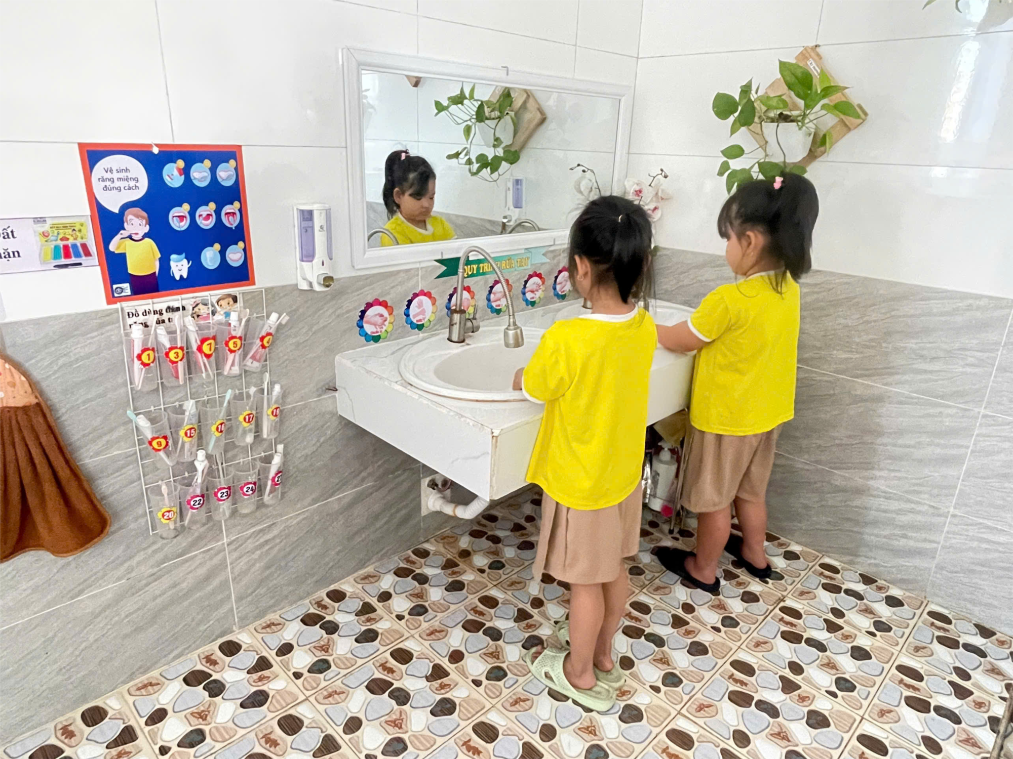 Kỹ năng rửa tay, rửa mặt giúp trẻ nhận thức được tầm quan trọng của việc giữ gìn vệ sinh cá nhân. Đồng thời, trẻ cũng được học về cách sử dụng tiết kiệm nước và xà phòng, qua đó nâng cao ý thức bảo vệ môi trường.