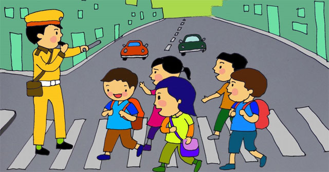 – Các cháu khi qua đường phải có người lớn dắt, không thì dễ xảy ra tai nạn.